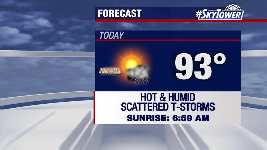 Daytime highs in the mid 90°s with scattered afternoon thunderstorms.