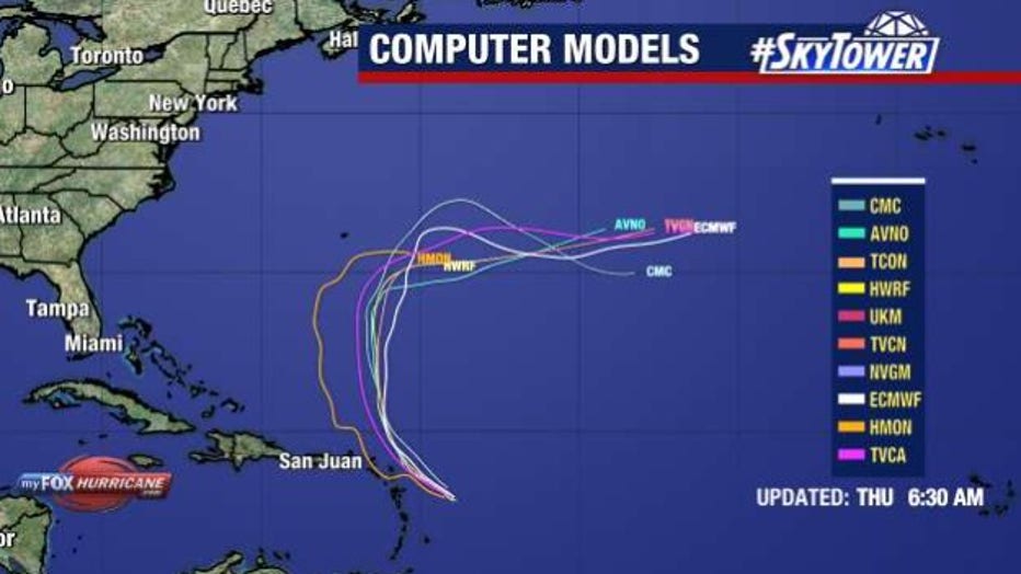Even though Tropical Storm Jerry is still forecast to become a hurricane later this week or over the weekend, some computer forecast models have it remaining a high-end tropical storm as it moves near or to the northeast of the northern Leeward Islands later Thursday and into Thursday night.