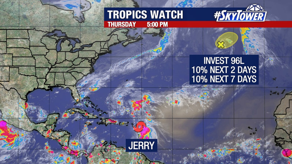 TAMPA, Fla. - Tropical Storm Jerry continues to spin across the Atlantic and is on track to strengthen into a hurricane.