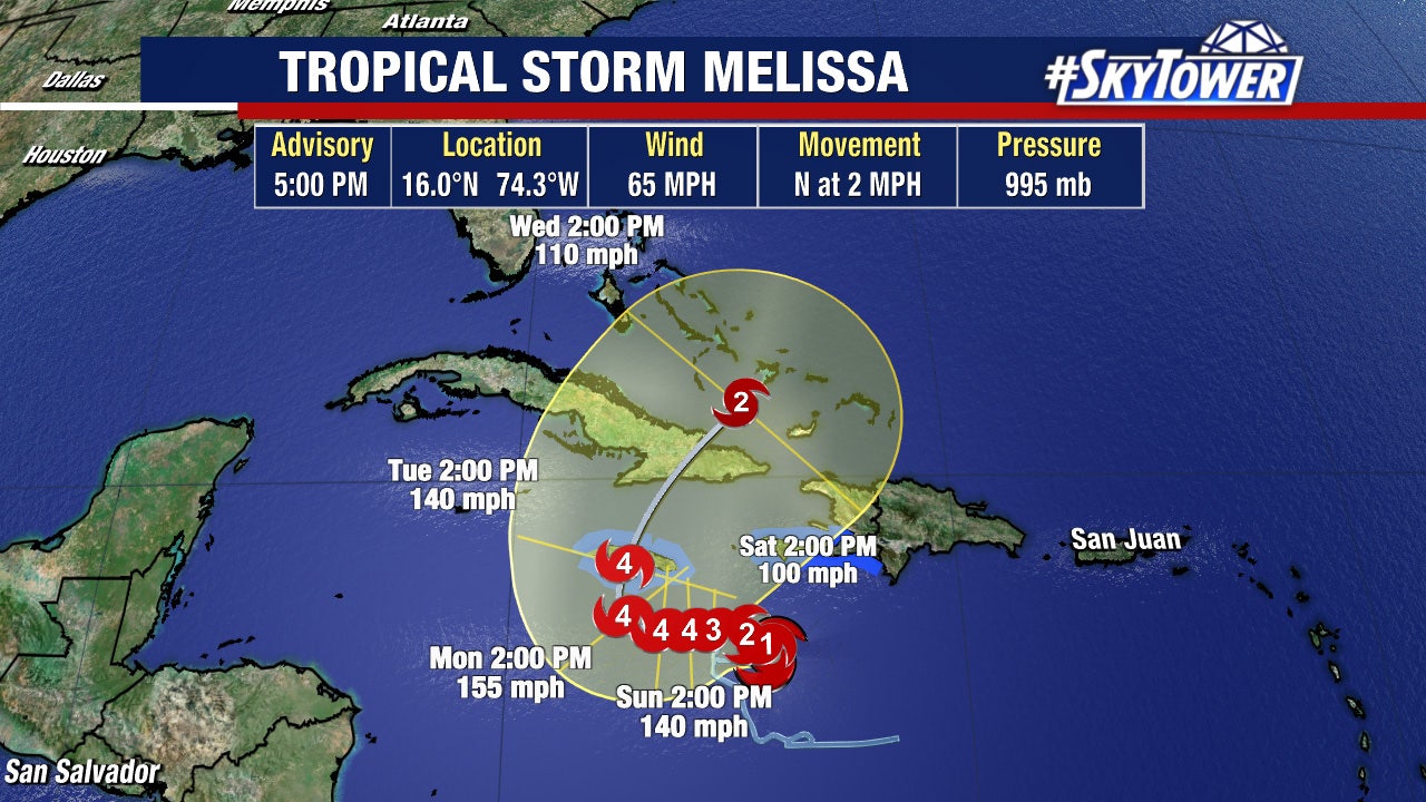 TAMPA, Fla. - Tropical Storm Melissa strengthened Friday afternoon and is likely to become a major hurricane by the start of next week.