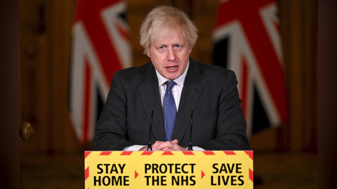 FILE - UK Prime Minister Boris Johnson speaks during a coronavirus press conference at 10 Downing Street on Jan. 22, 2021 in London, England.