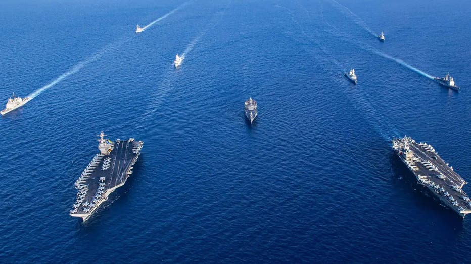 The strike group includes the USS Gerald R. Ford,the world's largest aircraft carrier, according to the U.S. Navy, as well as the Arleigh Burke-class guided-missile destroyers USS Mahan, USS Winston S. Churchill and USS Bainbridge.
