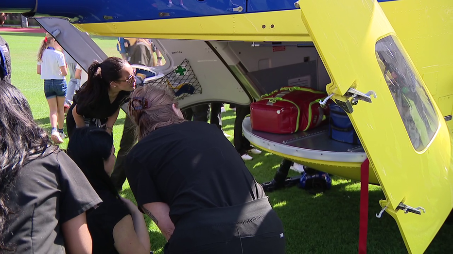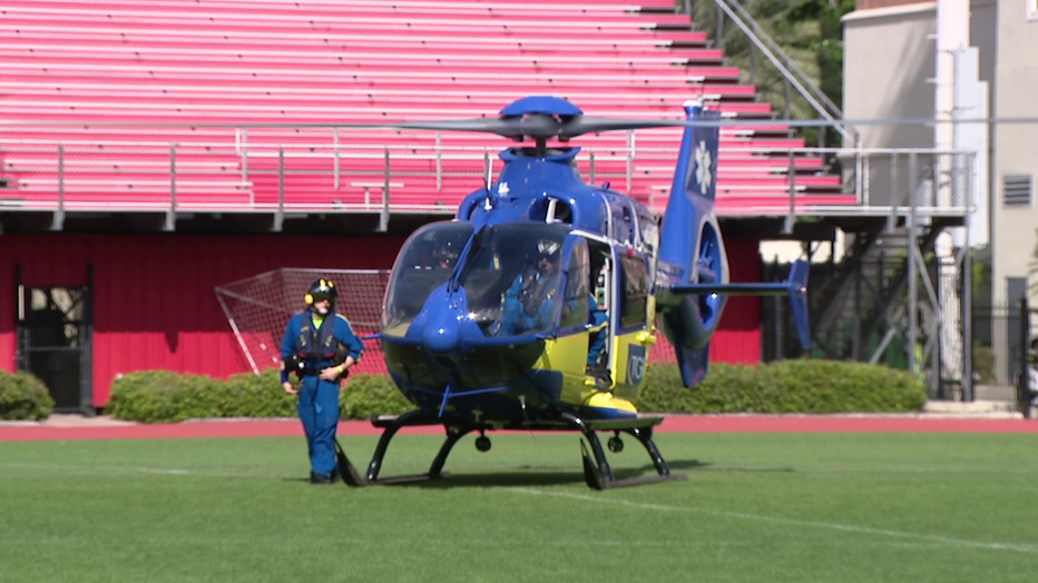 A Tampa General Hospital Aeromed helicopter landed on the turf at University of Tampa's Pepin Stadium Friday to give physician assistant students a real-world look at critical care transport. FOX 13's Ariel Plasencia reports.