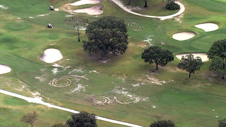 Overnight, someone drove over several areas of the course, damaging fairways.
