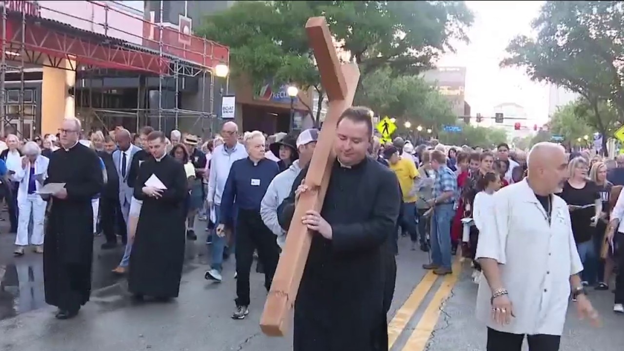"Most people associate Good Friday with Catholicism, but it's really for all religions," said Irma Sanders, who walked among the hundreds. "And that's what I like about walking to the stations is that you stop at every church. I couldn't possibly name them all, but it's every denomination."