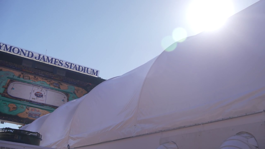The league has spent the entire week building the ice surface inside a massive, perfectly climate-controlled, 70-yard tent inside Raymond James Stadium. That tent will be removed early on Sunday.