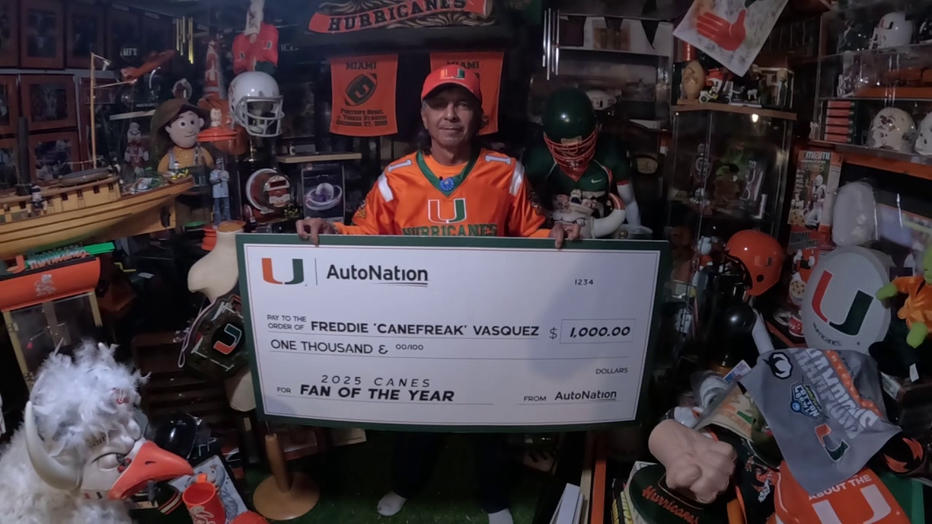 However, this season has been more than just a gift. Vasquez was named the 2025 Miami Hurricanes Fan of the Year in the same season the Canes made it to the national title game. It's the second year they have given out the award. He was given $1,000 with the honor.