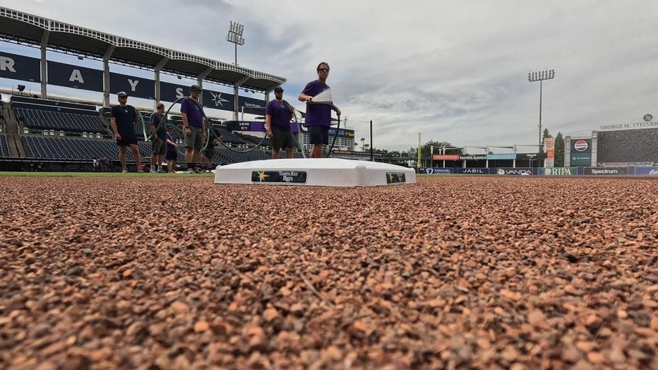 FOX 13's Mark Skol Jr. takes a look at how the grounds crew for the Tampa Bay Rays are dealing with the change of scenery this season.