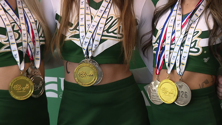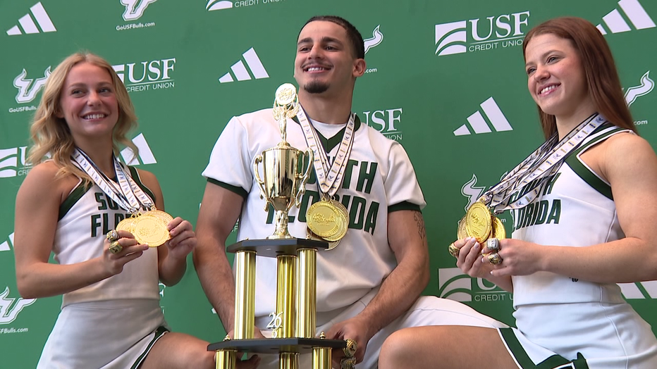 There's a clanging noise that can be heard constantly on USF's campus right now. Those sounds come from the medals of yet another national title for both the all girls and coed cheer teams. FOX 13's Mark Skol Jr. reports.