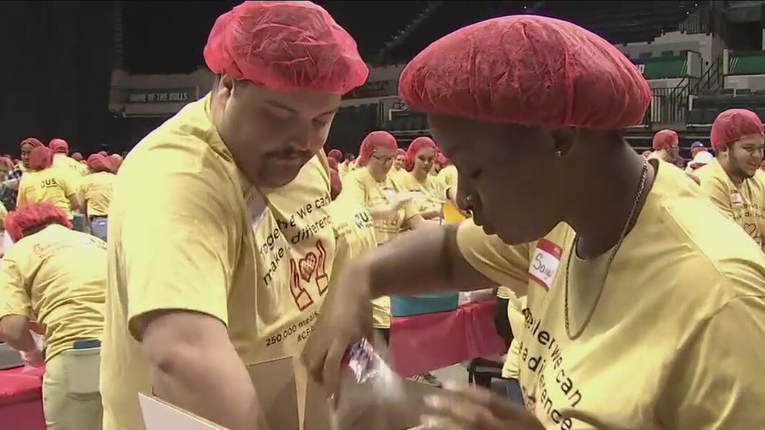Chick-fil-A may be closed on Sundays but some of their employees were working anyway, creating food packets to help those who have hit hard times. The event was held at the Yuengling Center at USF.