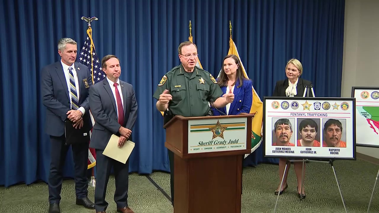 Polk County Sheriff Grady Judd discussed the biggest fentanyl bust the county has ever seen, as three people were arrested with enough fentanyl to kill five million people.