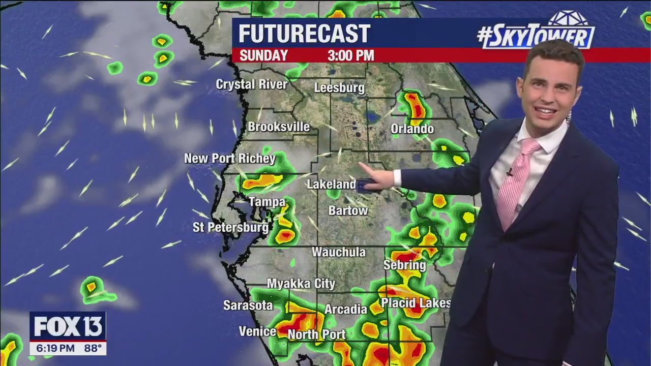 FOX 13 News Meteorologist Nash Rhodes says showers and storms will disappear later in the night.