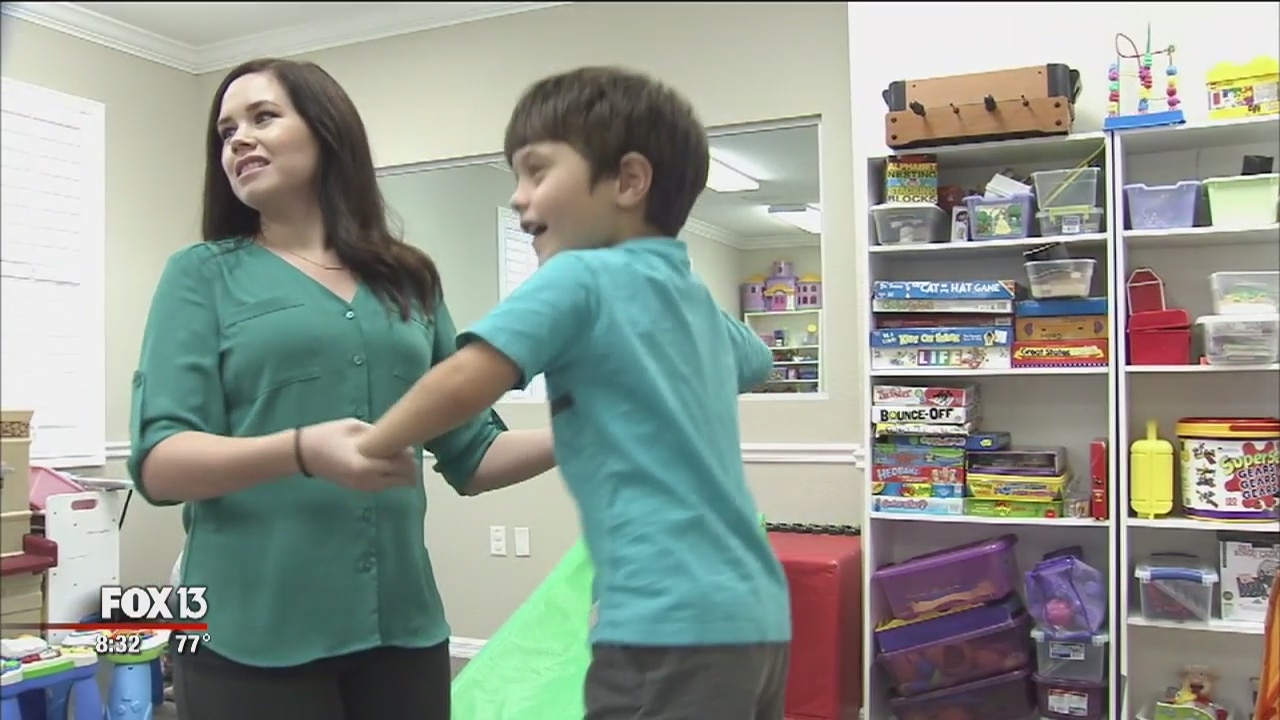 Laura Moody talks with a family regarding their autistic child, and the benefits of his therapy.