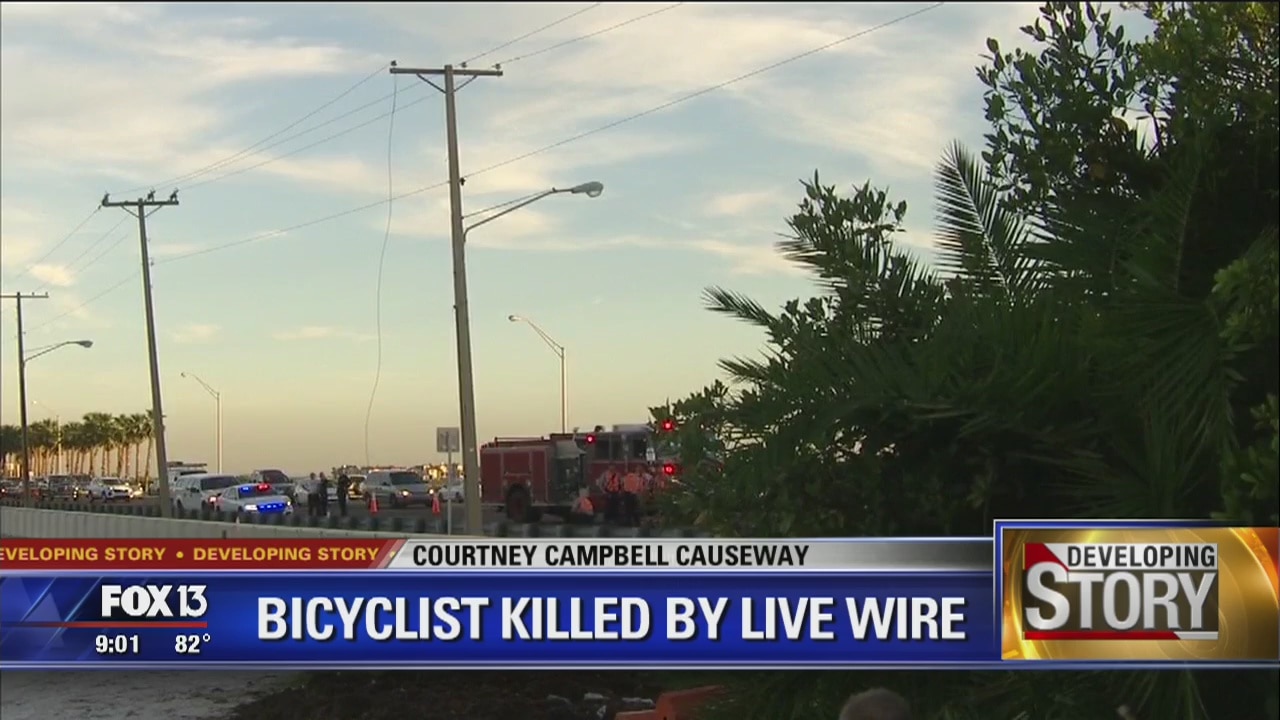 Bicyclist killed by live wire