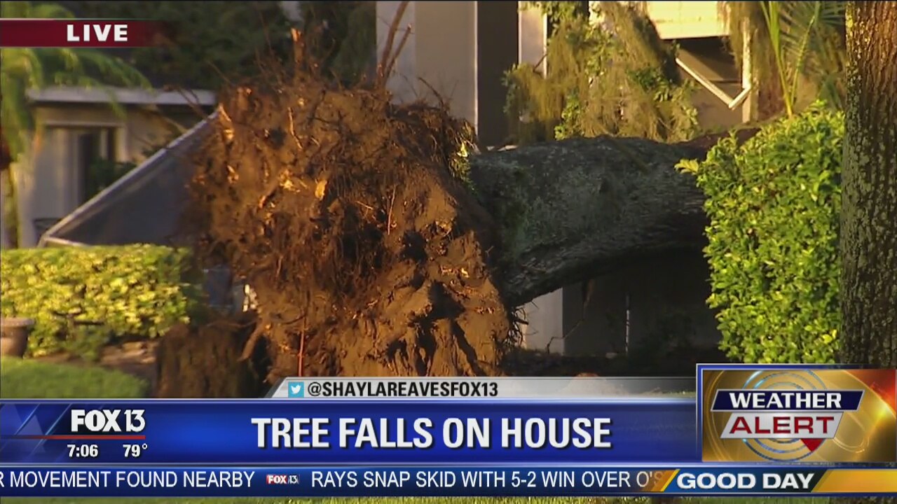 Tree falls on house