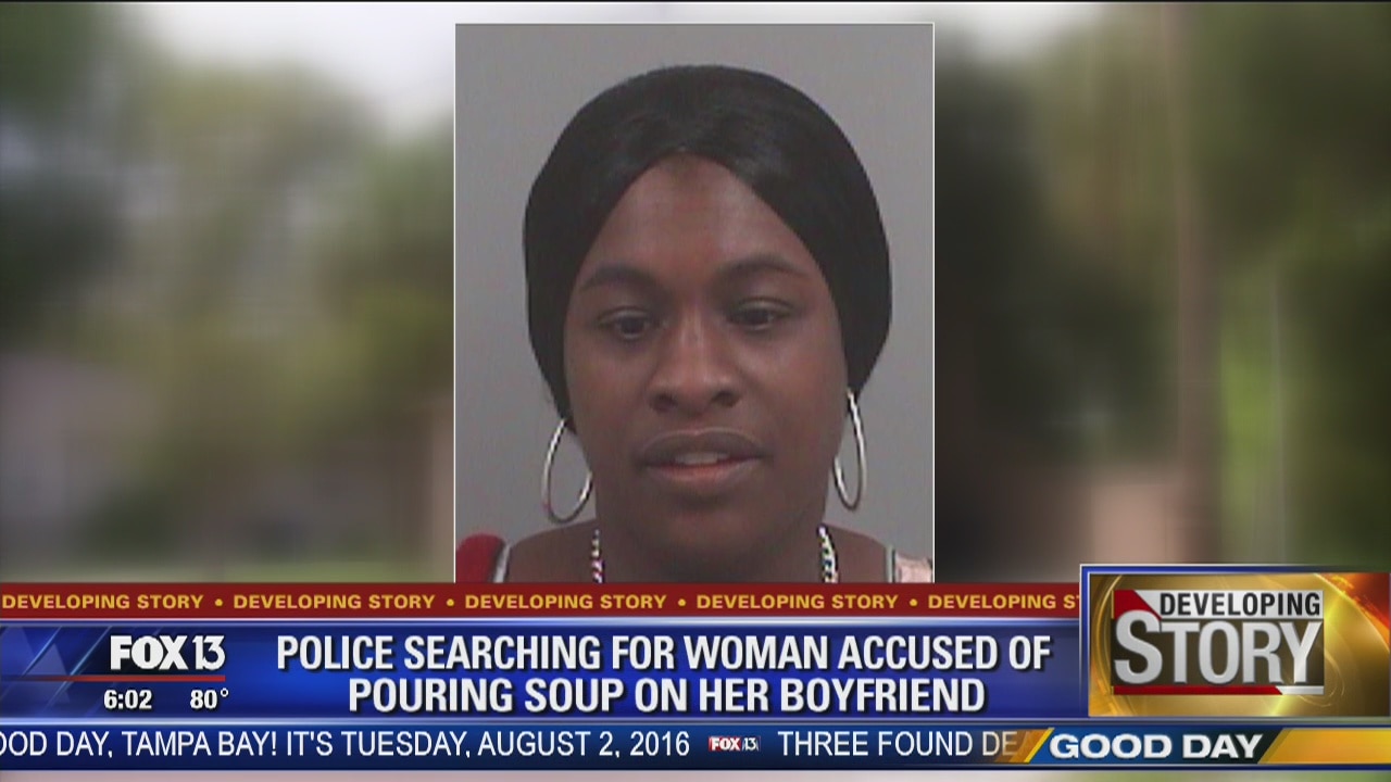 Woman pours soup on boyfriend