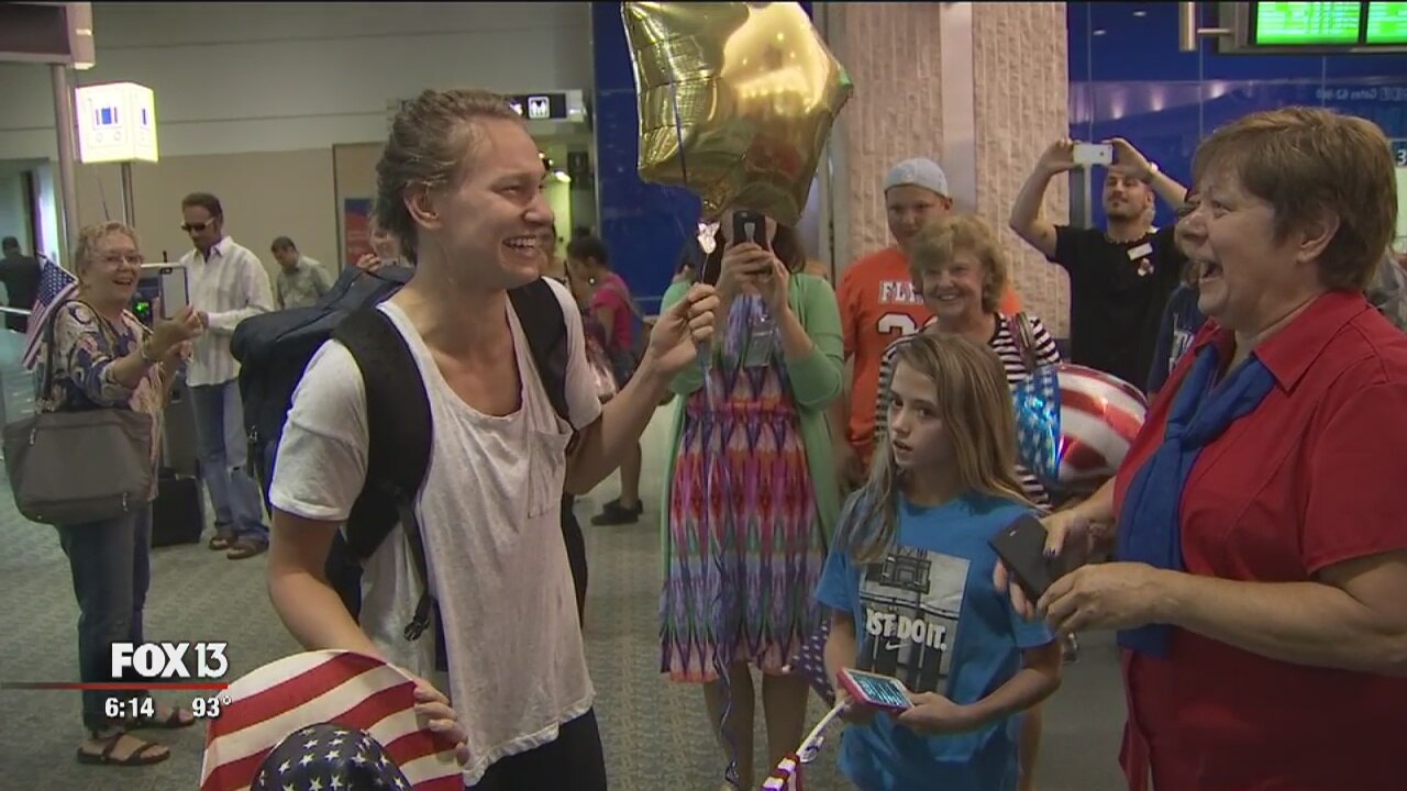 Gold medalist returns home