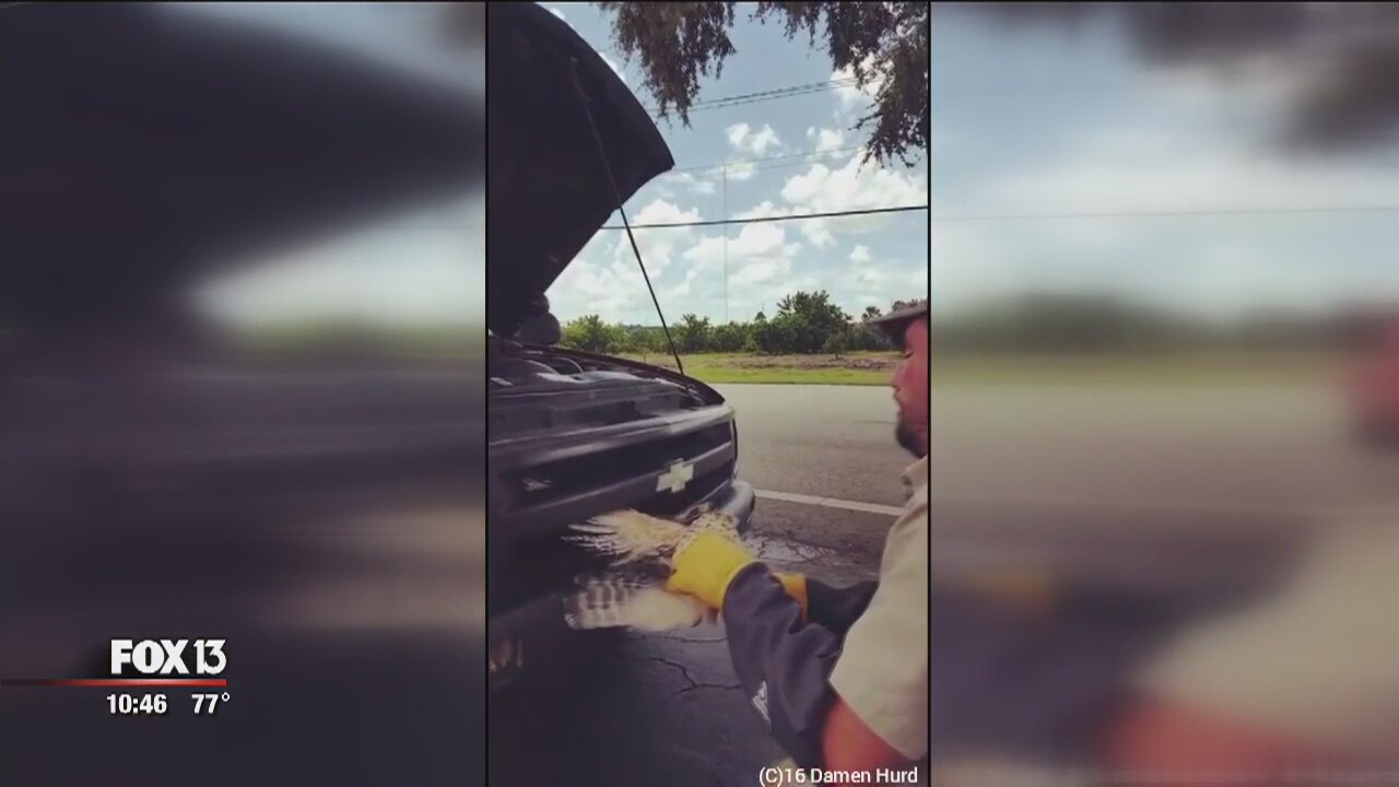 Hawk rescued from inside truck grill