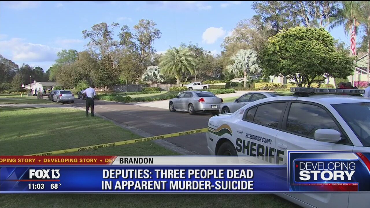Three people were found dead in a Hillsborough County home today in what deputies suspect was a double-murder and suicide. The sheriff's office says the three adults were found in a home on Hickory Creek Drive in the east Brandon area. Detectives are awaiting a search warrant to learn more.