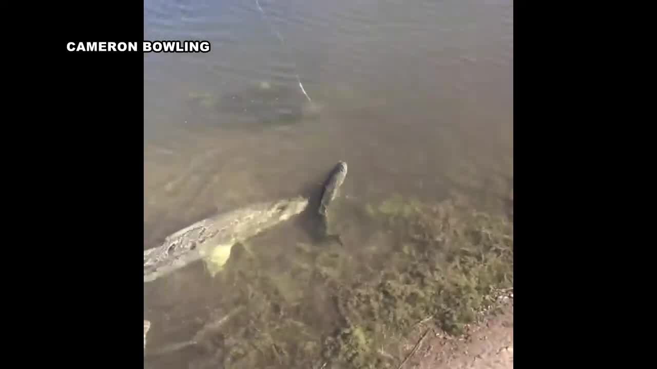 Florida fisherman catches bass which is being eyed by a snook that snatches it. VIDEO: Cameron Bowling