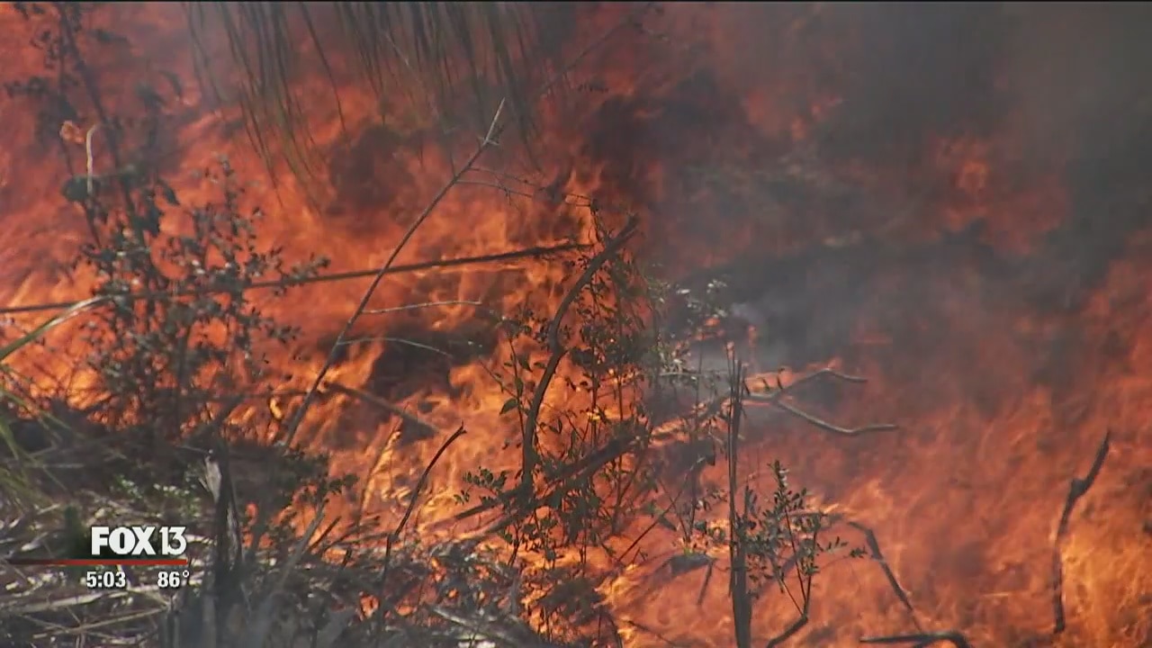 Hernando County Fire and Withlacoochee Florida Forest Service are still battling a 1,100-acre brush fire in Weeki Wachi Preserve. The fire has nearly tripled in size since crews began working to contain the blaze on Saturday.