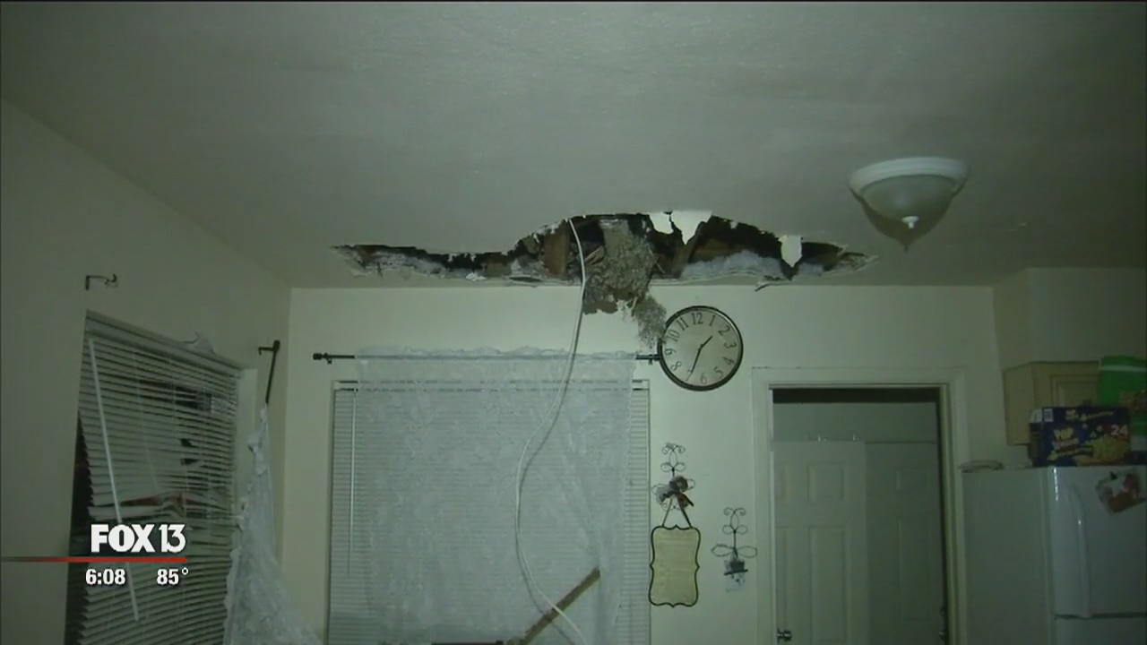 A St. Petersburg woman woke up to a tree crashing into her home. It broke through the kitchen ceiling leaving behind a real mess.