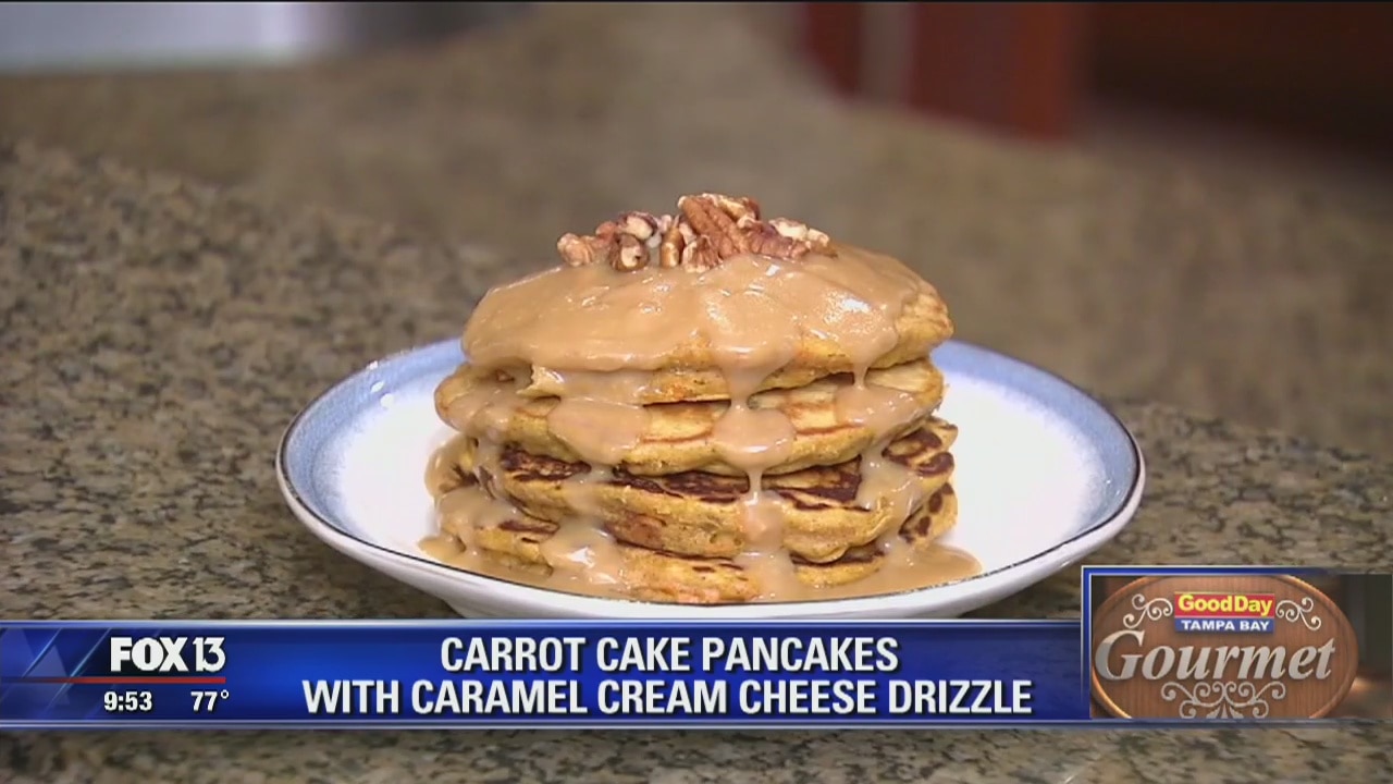 The latest delicious recipe from FOX 13's Vanessa Ruffes is carrot cake pancakes with caramel-cream cheese drizzle.