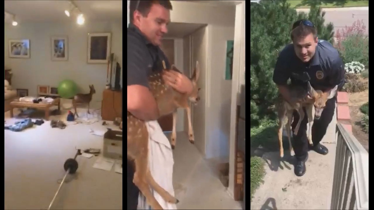 Lakewood police posted a video on Facebook of their rescue of a fawn after it broke into a home