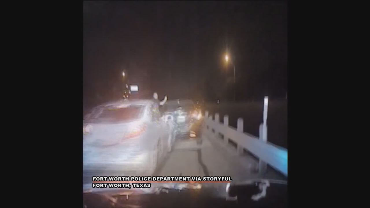 Dashcam video shows a Fort Worth officer who was hit by a drunk driver