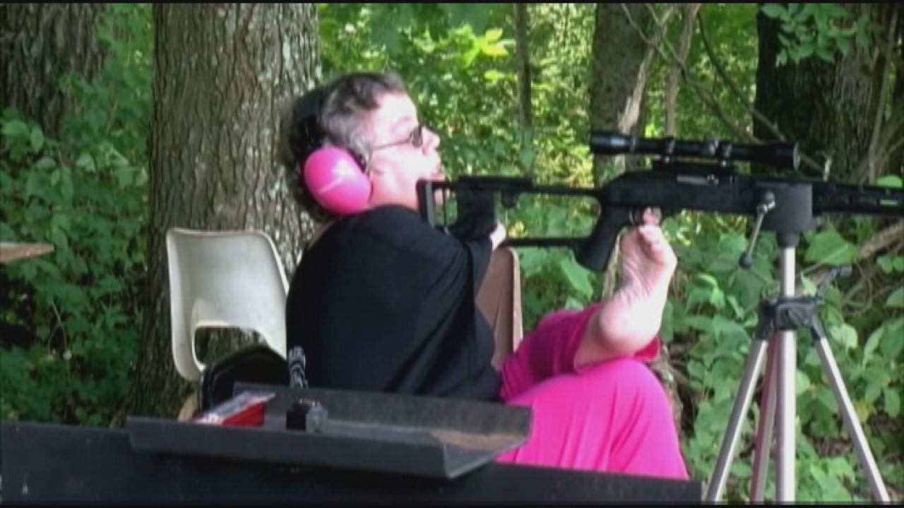 An Iowa woman, born without arms, is living her life without limits. She has taken up shooting as a hobby - using her foot to shoot the gun.