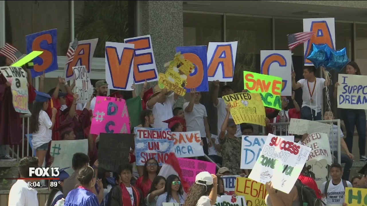 On the footsteps of Clearwater's courthouse, around 100 supporters of DACA gathered. There were chants to save the Obama-era program. Supporters made signs, one of them reading "legalize our dreams."
