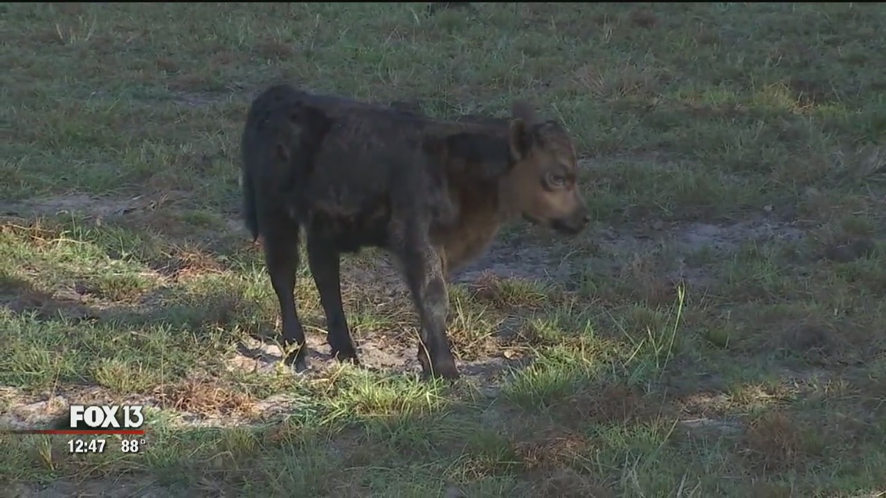 Newborn Dexter calf named 'Irma' born at Giraffe Ranch