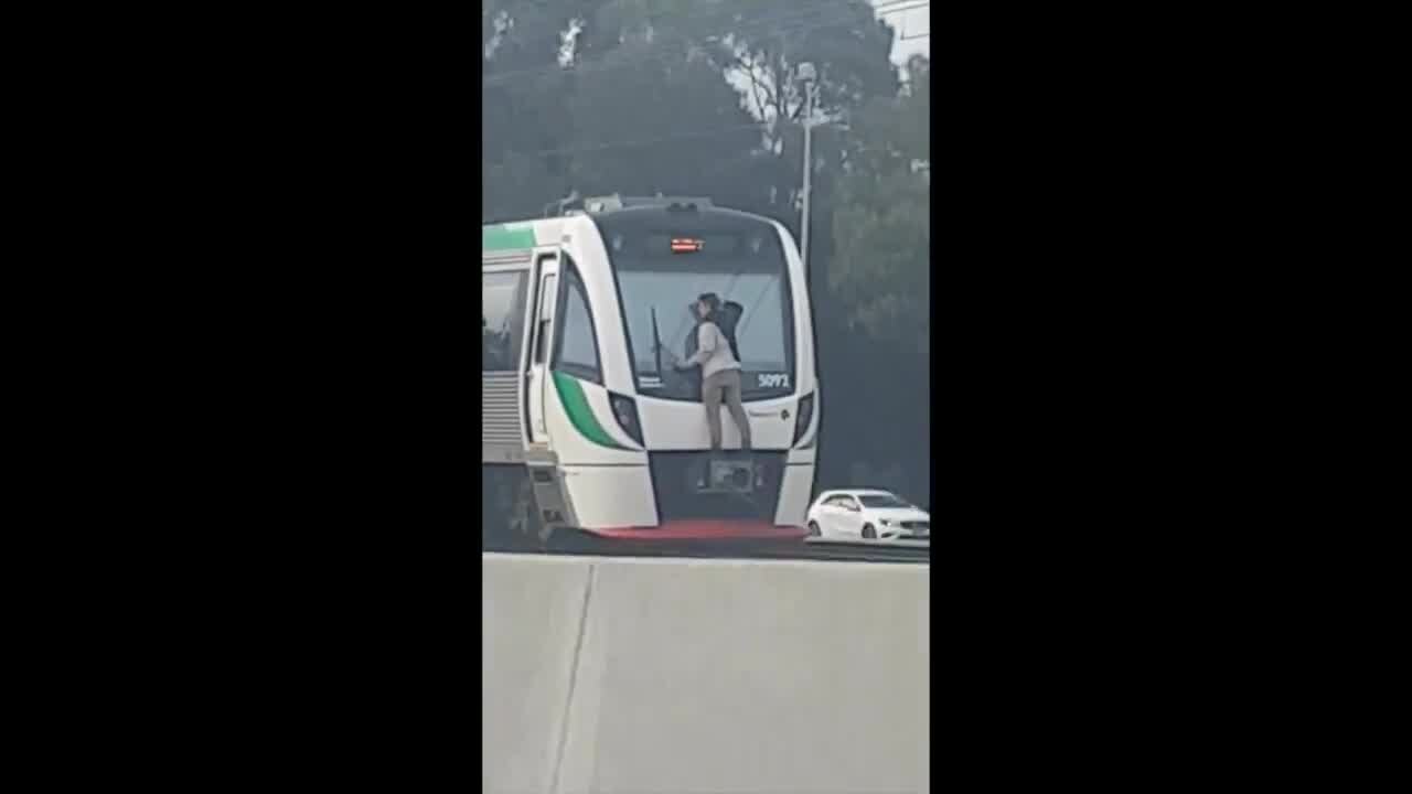 VIDEO: Man clings to back of train in Perth, Australia
