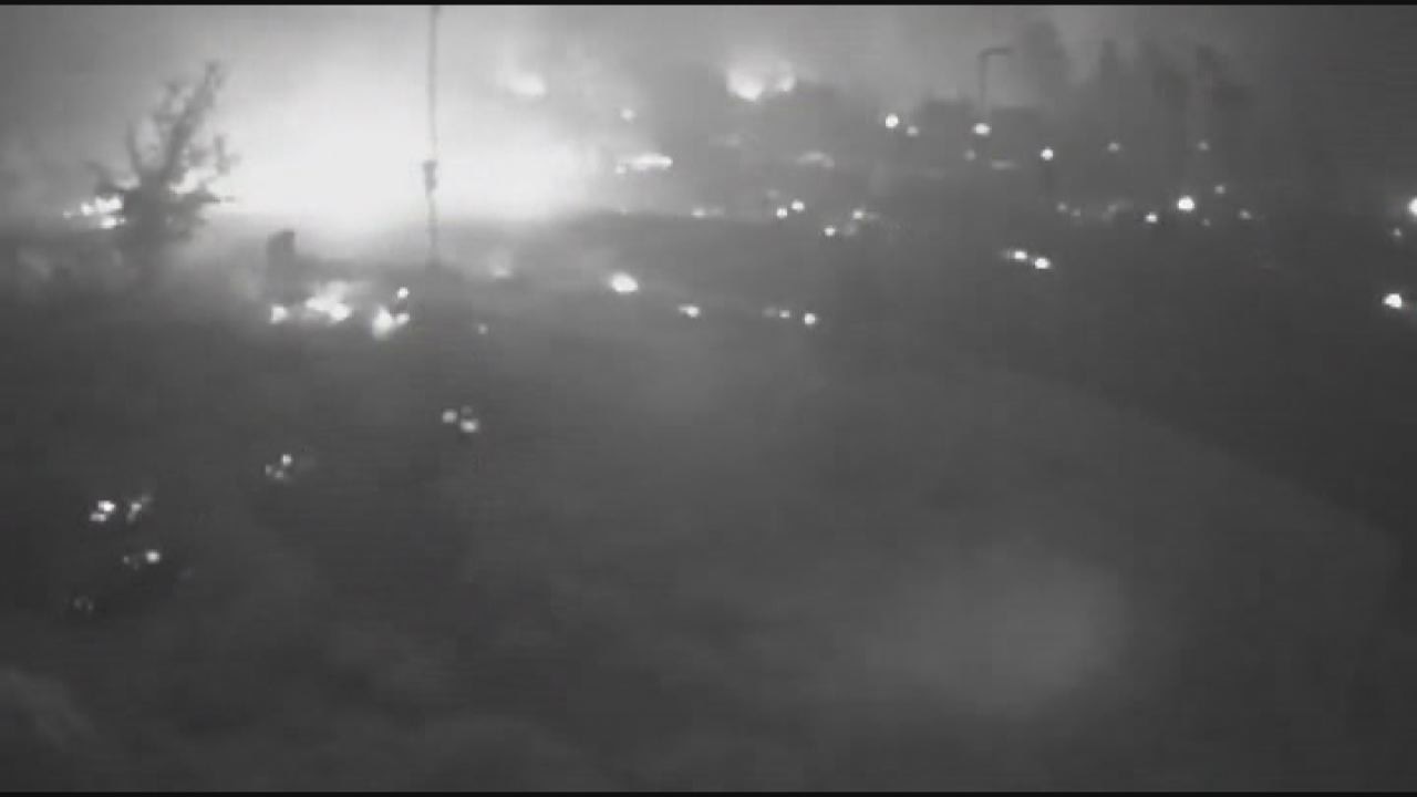A hospital in California was evacuated just before spreading wildfires threatened the facility.Surveillance images from the hospital?s parking area show embers and flames blowing across the landscape.