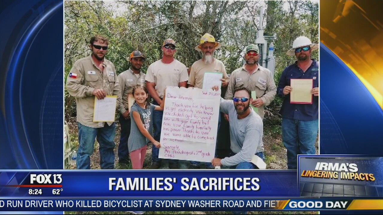 At one point, 90 percent of Highlands County was without power. For Kaila Albritton, her lineman husband immediately began working 20 hours a day after Irma. Ironically, the mom of three kids, were without power.