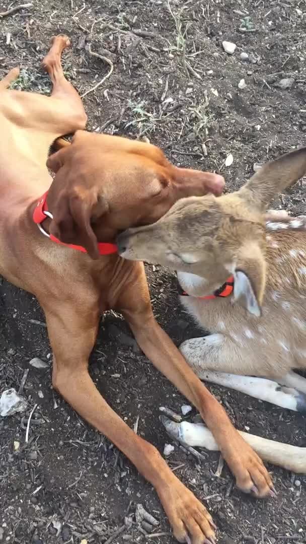 Kate Dupnik, their owner, posted video of the fawn grooming the pup sweetly with its eyes closed. Then, the pup takes a turn as they're snuggled up together. Video via STORYFUL