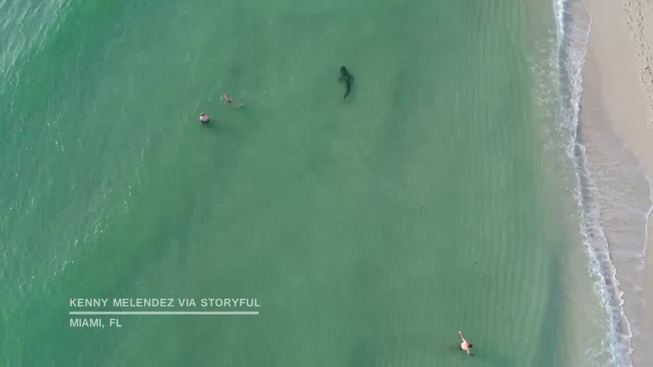 Shark swims close to swimmers in Miami