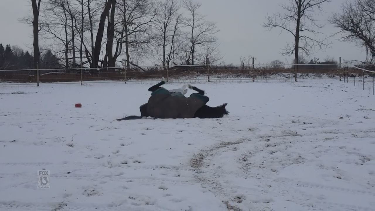 Snowy conditions and chilly temperatures might make some miserable, but not so much for others. Bella, a rescue horse from Hope Equine Rescue in Auburndale, may be from the Sunshine State, but she was clearly enjoying the white blanket of snow in Mason, Michigan