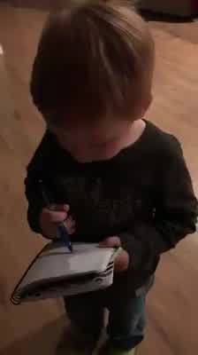 Little boy writing shopping list is the best thing you'll see today