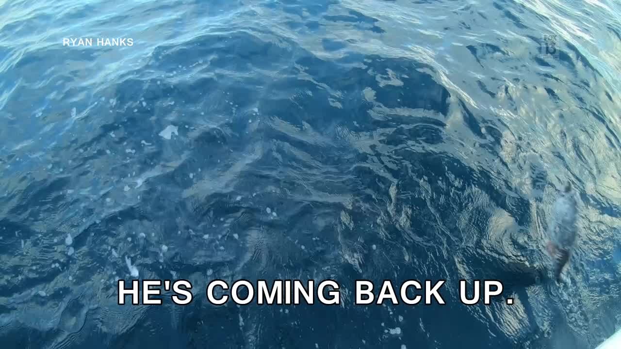 Mako shark leaps into air after being caught by fisherman off Coquina Key. VIDEO: RYAN HANKS