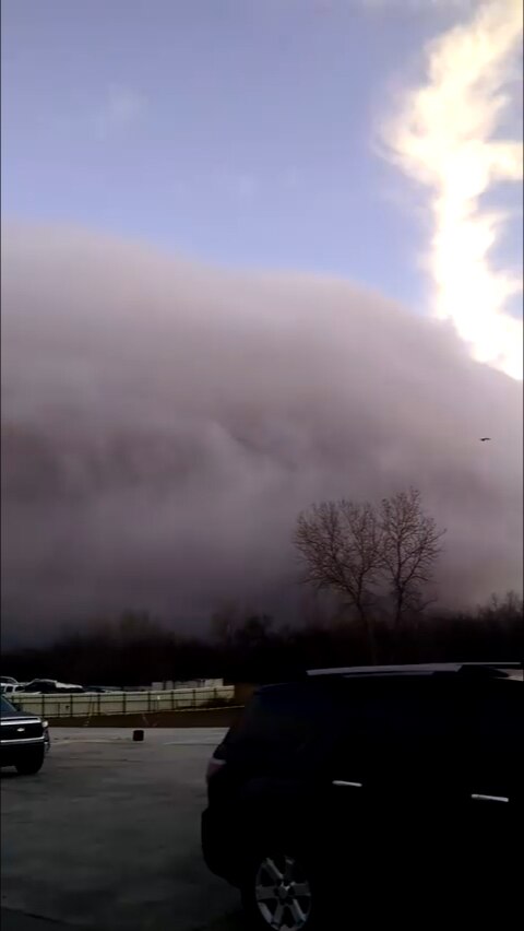 A cold front rolled through Oklahoma Thursday, bringing with it a massive shelf cloud and wintery weather.