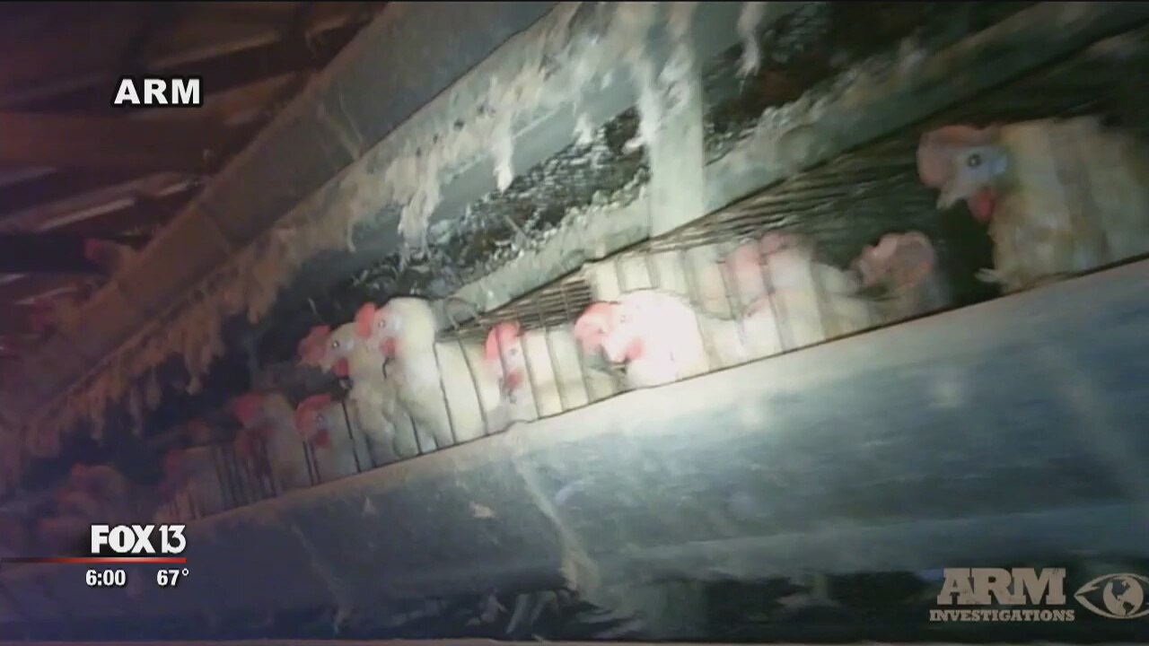 An egg farm in Polk County is under fire from an animal rights organization that released video Tuesday, saying it shows chickens suffering serious abuse.