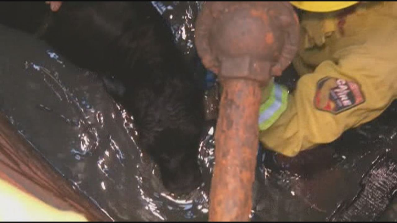 Fire crews in California come to the rescue of a baby cow that fell into a well Monday night.