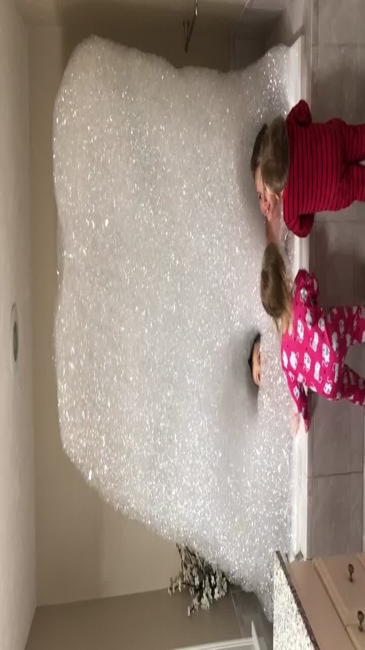 Massive bubble tower gets out of control at bathtime
