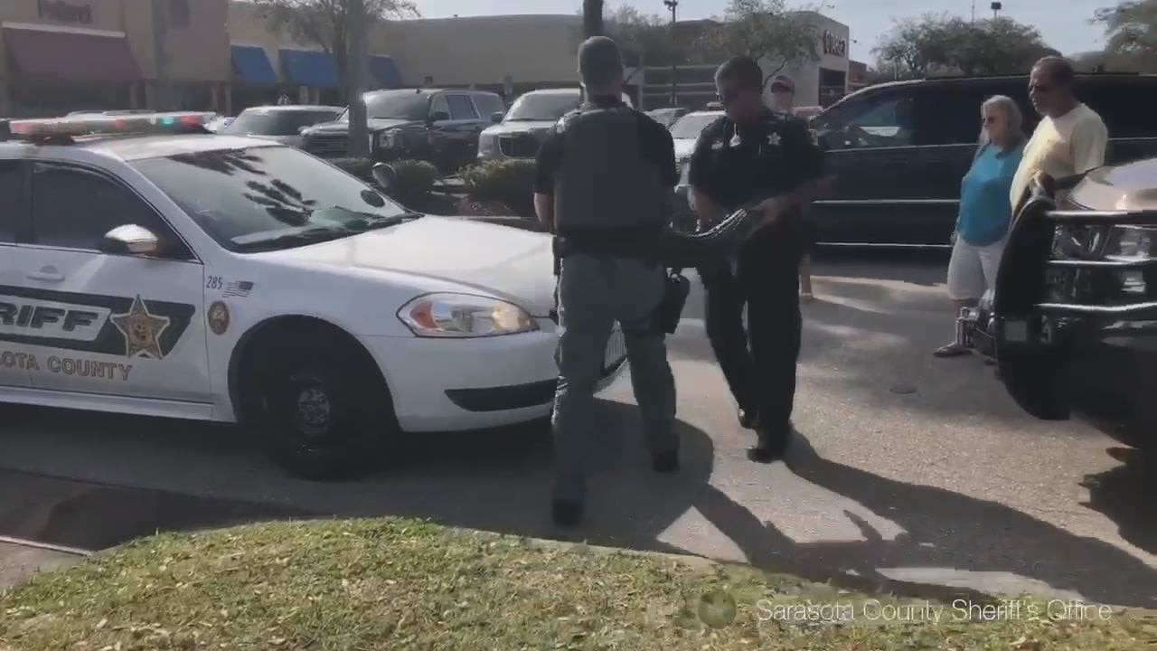 Two members of the Sarasota County Sheriff's Office saved unsuspecting shoppers from an alligator lurking under a vehicle in a Winn Dixie parking lot.?