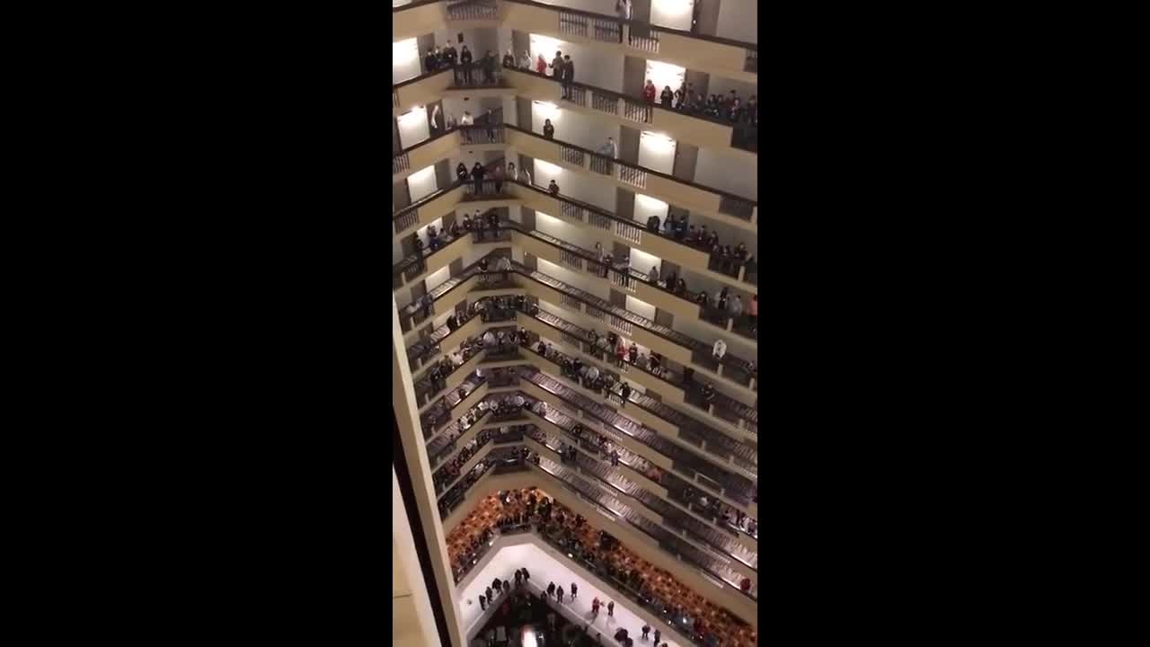 A choir in Louisville, Kentucky gave a hauntingly beautiful performance for an entire hotel when they sang the Star-Spangled Banner.