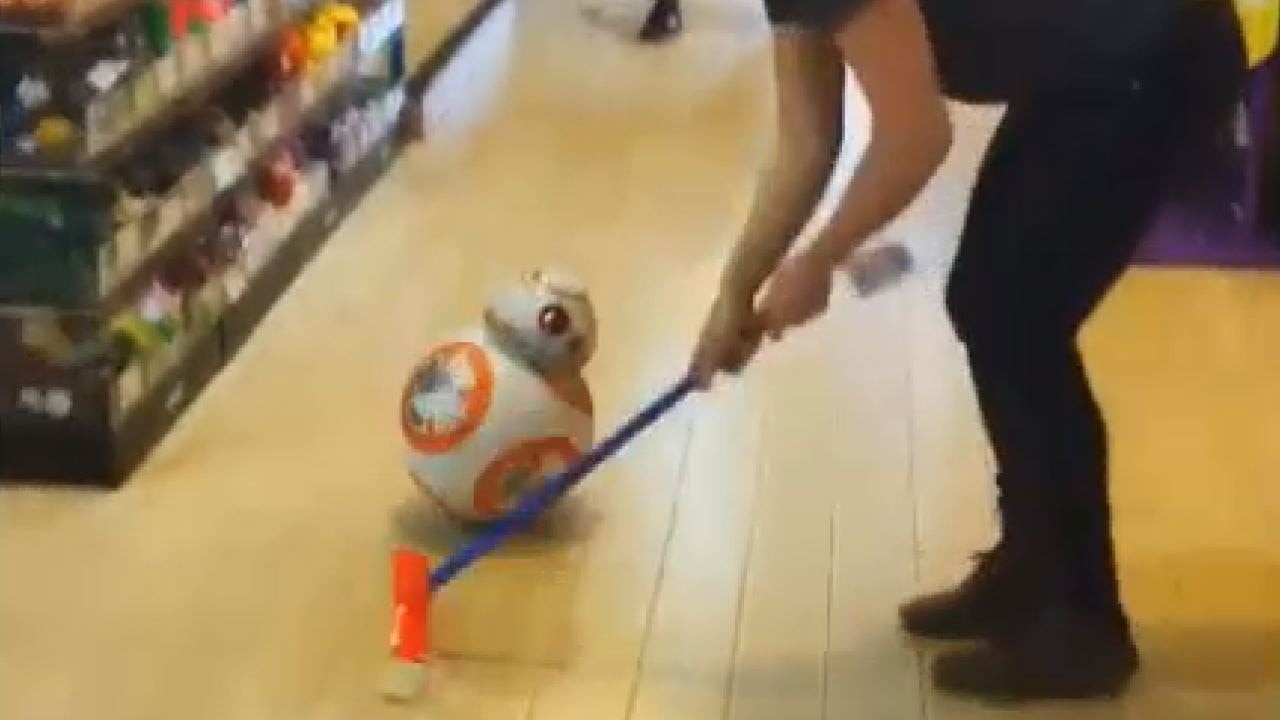 A toy store in North Carolina proved you don?t need to be in the Winter Olympics to join the curling sport. Or even human. The toy store, called Dancing Bear Toys, recorded a fun re-enactment of the cult sport, with a BB-8 droid toy. Credit: Dancing Bear Toys via Storyful