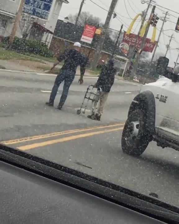 A driver in Georgia went out of his way to help an elderly man cross a busy street Sunday in a heartwarming moment captured on video.