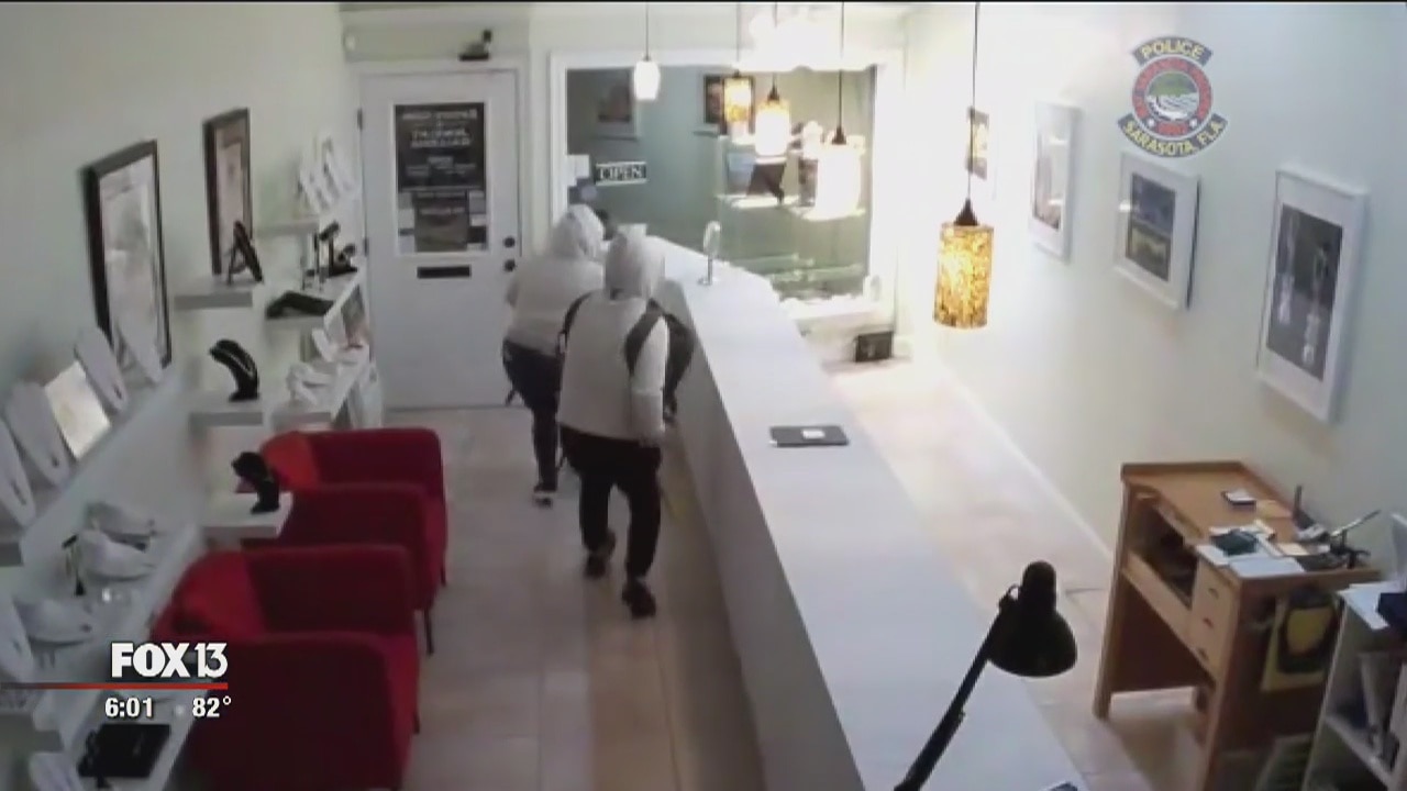 On Thursday morning around 1:15, two thieves broke into Estate Coin and Jewelry Galleria in Sarasota. The pair spent only about 60 seconds inside, targeting vintage coins and expensive jewelry.