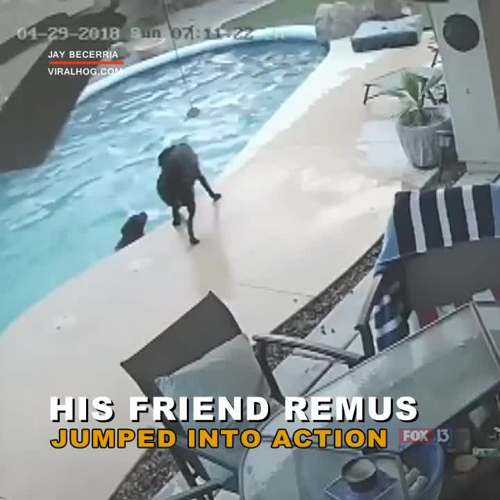Pup saves friend that fell in the pool